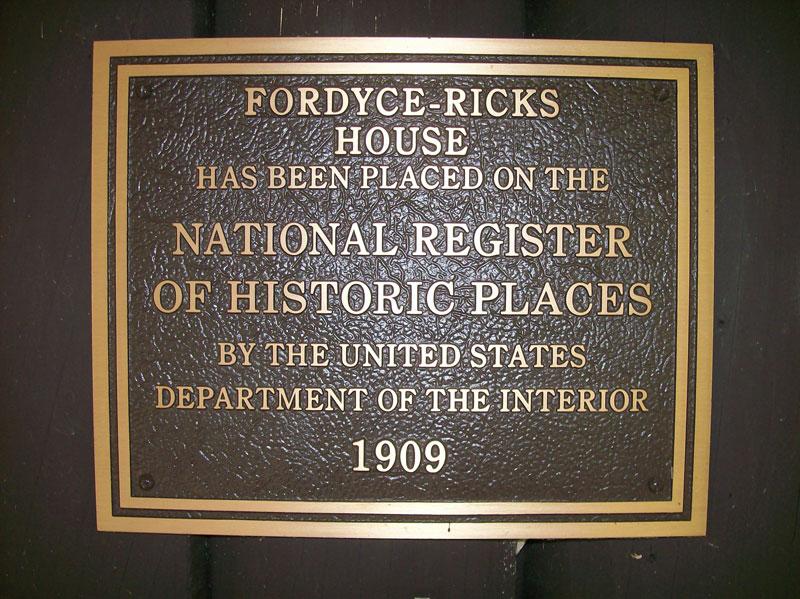 Plaque acknowledgement of placement on the National Register of Historic Places