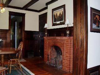 This beautiful home was built in historic Atchison, Kansas by Dr. & Mrs. George Baudry. It has hosted only five owners (two being a father who deeded the property to his daughter; together they owned the home for over 67 years). Atchison, also known as the most haunted town west of the Mississippi, has over 20 sites on the National Register of Historic Places, five museums recounting the town’s colorful history, fantastic public and private schools, including Benedictine College, and much more. Atchison is conveniently located about 35 minutes from North Kansas City, 20 easy minutes to Leavenworth and St. Joseph, MO. To take a tour of Atchison go to http://www.atchisonksnews.com/ and click on the map. The house contains a:Stunning entry with gas fireplace that leads to 4 large bedrooms, 3 bathrooms, den/office, formal living room, family room, formal dining, eat-in kitchen and a large dry basement, all set on 1/2 an acre. Kitchen: Stainless steel appliances, Jenn-Air oven/stovetop/grill, pantry, and a washer/dryer nook. Formal Dining Room: original lead glass bay windows, beautiful original built-in cabinets, fireplace, and refinished hardwood floors. Formal Living: beautiful original lead glass windows, gorgeous hardwood floors, views into Missouri. Master Bath: claw foot bathtub, large built-in dresser and a walk-in closet. Master bedroom has an additional walk-in closet for him. Huge walk-in closet in 2nd bedroom. Has a 2nd floor attic space--perfect for storage. Downstairs Hallway: built-in drawers, bookshelf and a cedar-lined coat closet. Updated, zoned heating and cooling, electric, and plumbing. Large, dry basement with more washer/dryer hookups. New roof. Big front porch with classic swing. Park-like yard features; towering, well-kept trees (certified arborist stated that the Persimmon is probably one of the largest in the State of Kansas), patio and plenty of room for the kids to go barefoot.