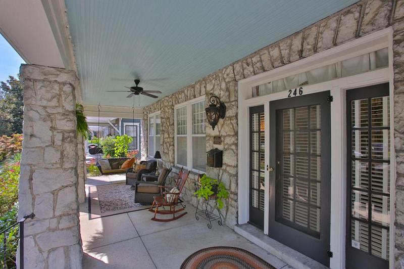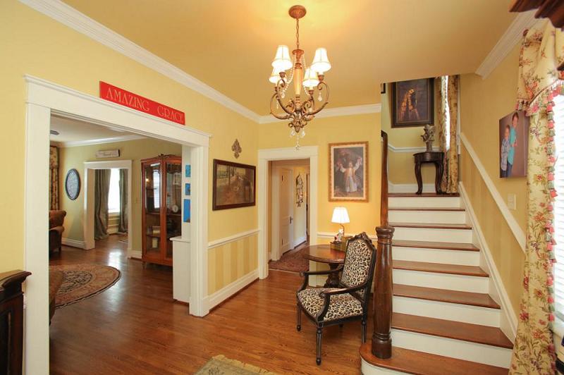 When you step into the foyer, you will discover the nostalgia of yesterday is as prevalent as the updates of today. A sense of words, beauty, and melodies are palpable throughout the home from years of housing musicians, painters, and writers. Its genteel hospitality will romance your heart with 2 outdoor porches, 4 fireplaces, 4 chandeliers, and a kitchen that will call forth the cook inside of you. Hardwood floors will guide you from the front door to the first-floor master suite with its wooden beams and delightful bath area, which includes 2 sinks separated by a spacious built-in marble-topped dresser, a silver-footed tub, a generous shower, and mirrored closets. The first-floor utility room, petite guest bath, and butlers pantry help to make life not only convenient but a pleasure.