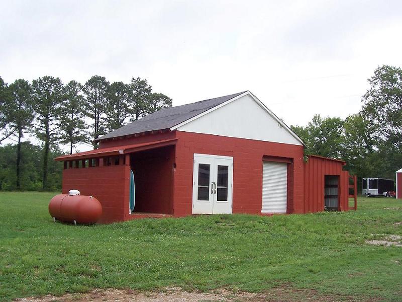 This shop is insulated, and has 220 Volt power source. It has water and a men's urinal. Great for the "hubby hobbyist". All open bay with metal trusses.