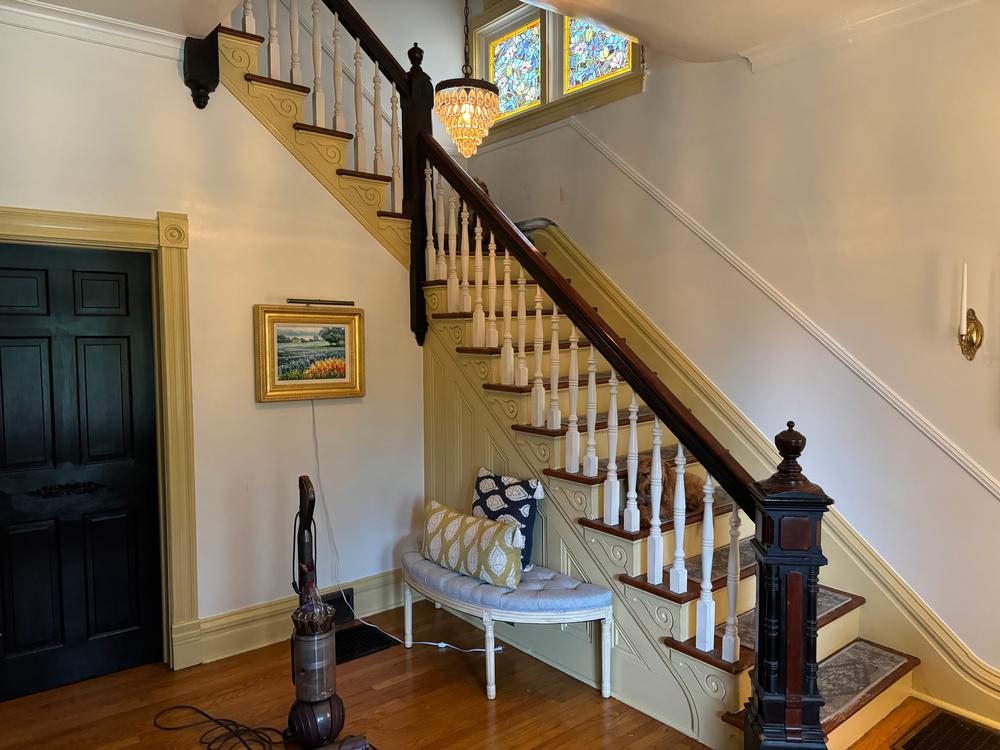 The front porch was restored in Spring 2024; a Gingerbread design was created for the balustrades, which was inspired by Gingerbread architecture during the Victorian period.