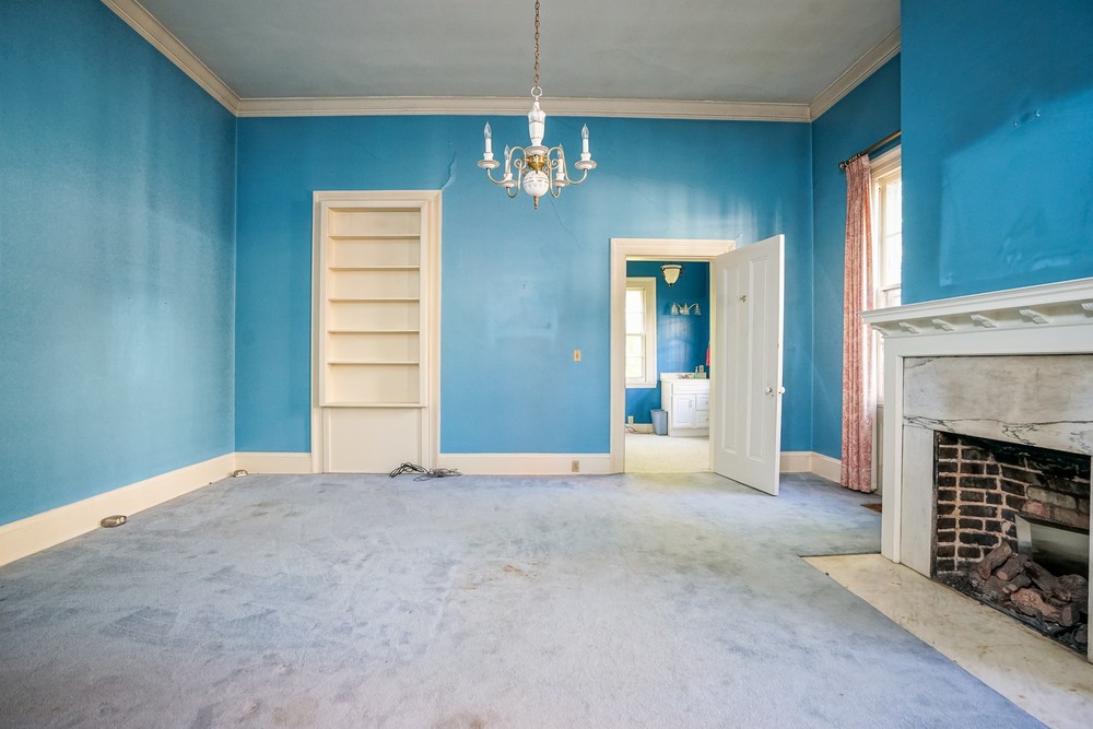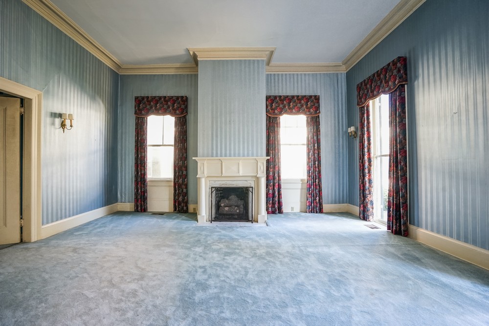 The central hall, four-over-four floor plan is typical for this style and was designed for ease of movement within the house, maximum air circulation, and for large scale entertaining. The floor plan in the main block of the house is essentially the same on both floors, except for the addition of bathrooms and closets upstairs. Both floors feature 13’ ceiling heights, with the eight main rooms ranging in size from 17’x20’, to 19’x20’. The main stair hall is 12’x40’ long. The detailing throughout the house is, essentially, original and all eight main rooms retain their original mantels.