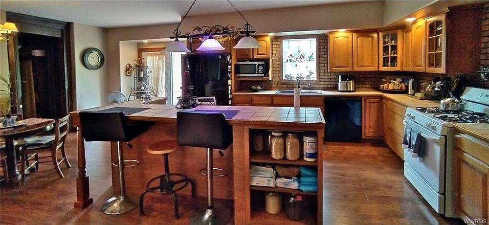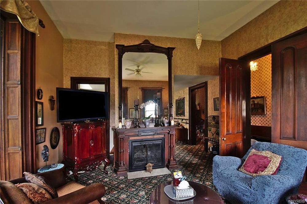 Exterior constructed of Genesee river clay bricks. Circular drive, hitching posts adds to the property's old world charm. Modern kitchen & 2nd floor luxury bath addition completed in 2002. A billiard sized playroom for entertaining or would make a great home office. Master bedroom & charming "lady's" & "gentleman's" bedrooms & parlors with old world elegance. Grand formal dining space or eat-in modern spacious kitchen! Patio & outdoor hot tub extend this glorious property even further!