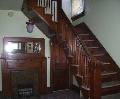 3 story home retains rounded bay/wing, upper front window, two marvelous brick chimneys, wall dormer atop front bay.