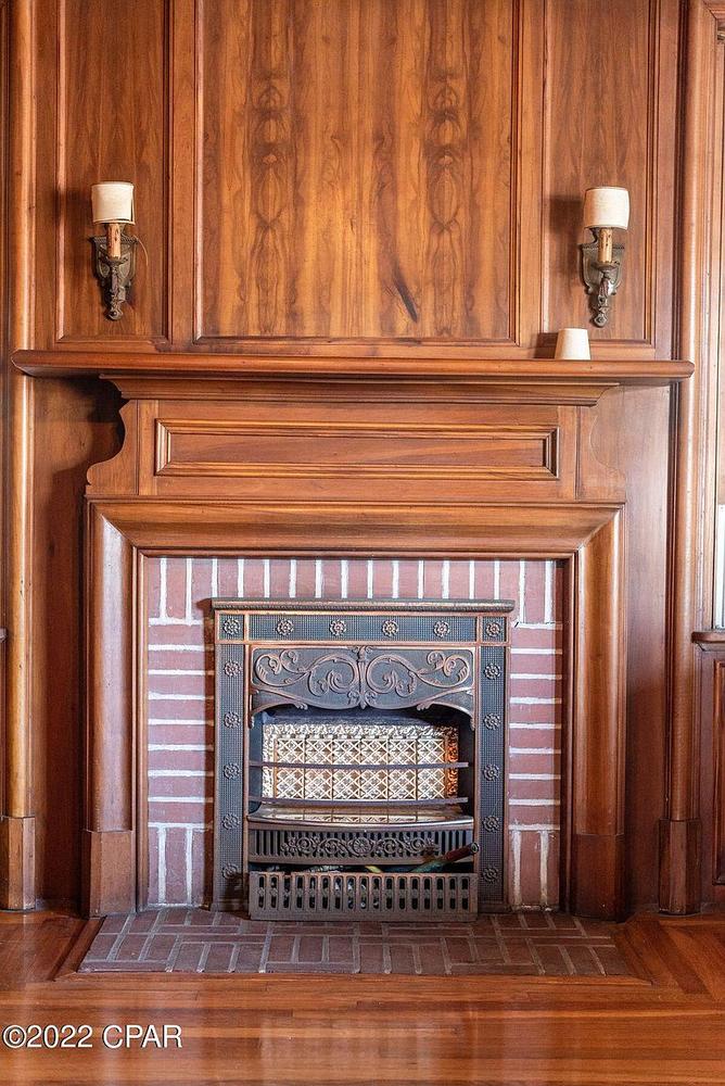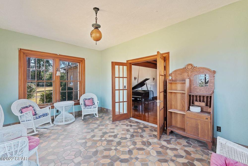Perfect for someone interested in restoring a historic home or perhaps opening a bed and breakfast or business, this home boasts a shingled roof, installed in 2005 in the main house, a Spanish tiled roof on the guest home, Spanish tiles left on the property that could be reincorporated, large concrete columns and Spanish brick on the exterior and a side-entry carport for loading and unloading a vehicle out of the elements. It features five garages, an outdoor shed and numerous interesting features including an off-center front door, intentionally set to prevent passersby from seeing straight through the home and a beautiful wooden staircase with ironwork and carved newel posts.