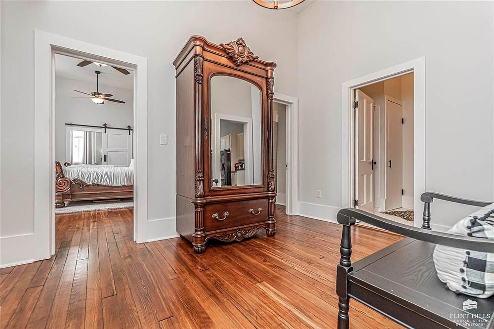 The central hallway leads to the master suite, 2nd bedroom, hall bath and a covered deck that overlooks the city of Abilene. The master suite is perfect, with lots of natural light, large master closet with laundry hook ups and the fabulous master bath.