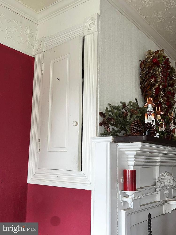 - Handcarved original woodwork.