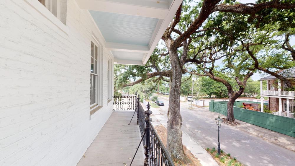 Originally, the first house was built by Cornelius Robinson in 1832, and three years later, he constructed the twin house next door for his son. In 1849, the first gas light was installed at the corner of Conception and St. Anthony. DeTonti Square, named for French explorer Henri De Tonti, is known for its gas lanterns.