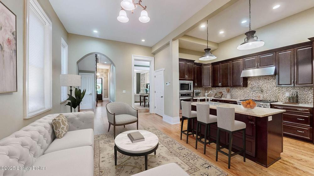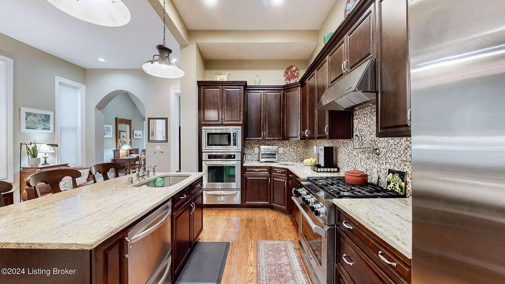 A true piece of art, from the inlaid fleur-dis-lis embellishing the hardwood flooring in the foyer, to the arched doorways, exquisite fireplace mantels, original millwork, exposed brick accents & soaring ceilings.