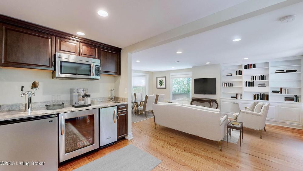 Behind the kitchen you will find a walk-in pantry, a custom-built wine closet (approximately 300 bottle storage) and a large laundry room with sink along with a butler's pantry with wet bar and additional refrigerator. The rear door leads out to a wonderful, screened porch for outdoor enjoyment.