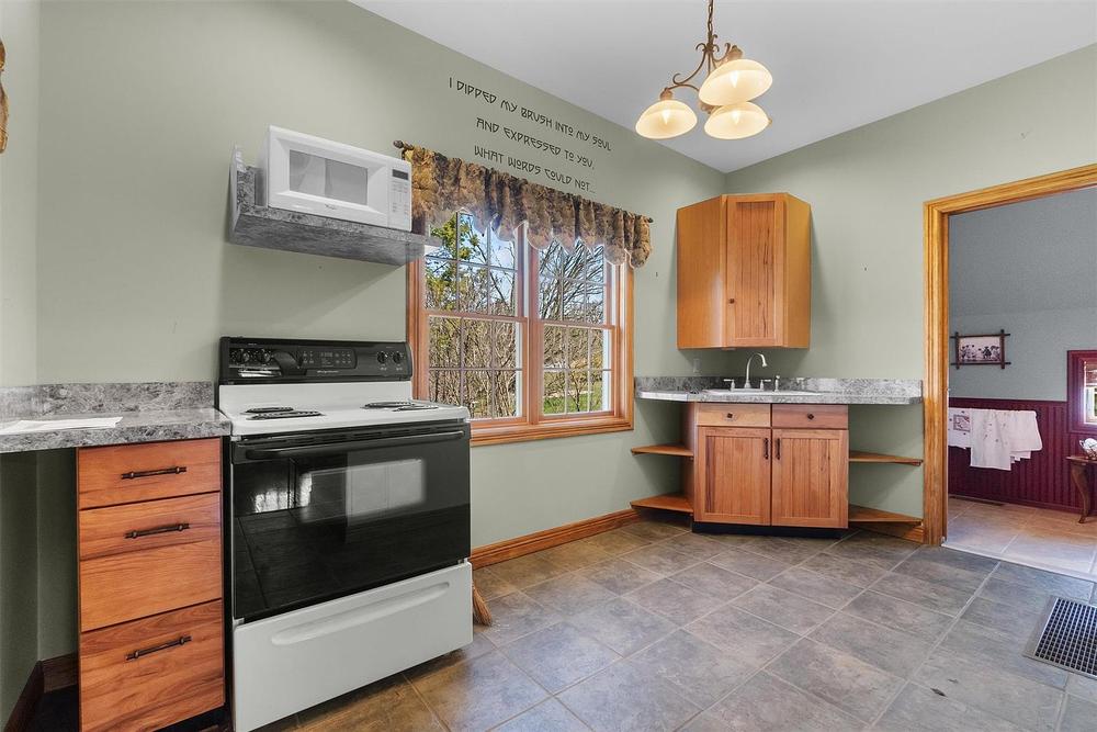 Graced with an exquisitely preserved, colonial kitchen, this home comes complete with exposed wooden beams, an open brick hearth and a Dutch door that leads to a screened side porch from which to enjoy mature trees and a beautiful landscape.