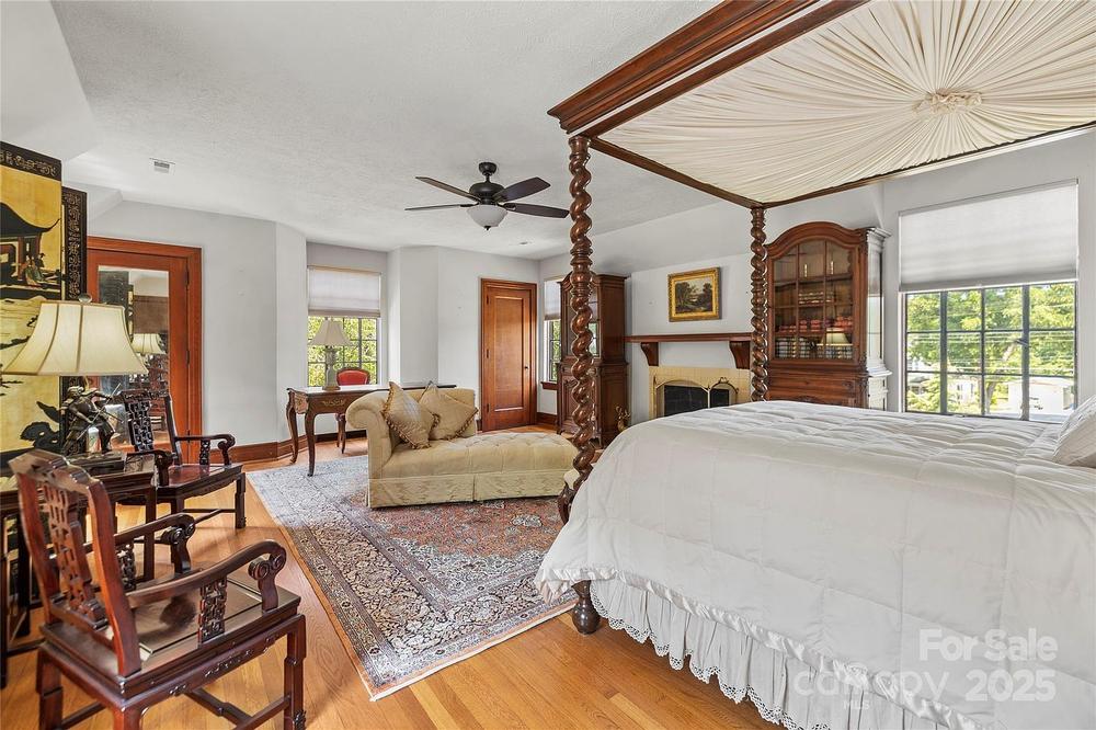 A grand foyer welcomes you with 10-foot ceilings, solid oak floors, crown molding, and rich architectural details throughout. The primary bedroom features a cozy fireplace with a classic mantel. Relax on the covered porch or explore the extensively landscaped grounds that feel like a private garden retreat.