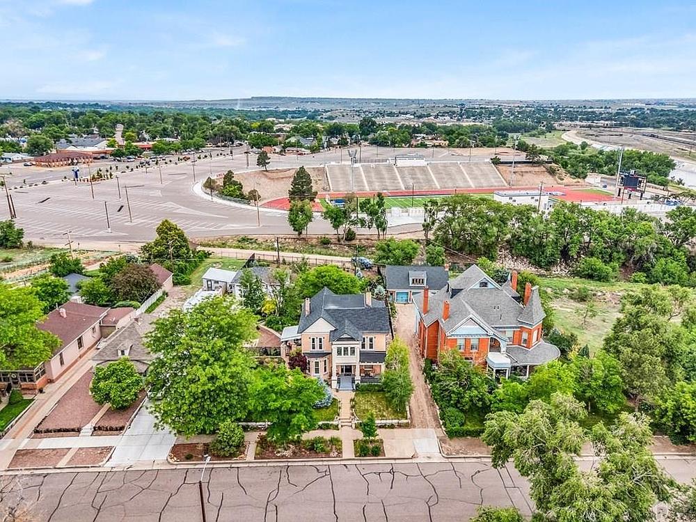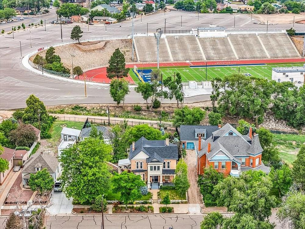 Victorian elegance meets modern comfort in this beautifully maintained 4-bedroom home located near the Historic Mesa Junction and close to Aberdeen. Situated on a spacious 0.46-acre fully fenced lot backing to Dutch Clark Stadium, enjoy stunning sunset views and the sounds of Friday night lights.From the remote-controlled gated driveway to the lush backyard garden, this property blends historic charm with thoughtful updates. Inside, original hardwood floors, tall ceilings, and three fireplaces (including one in the spacious primary suite) create a warm and inviting atmosphere.
