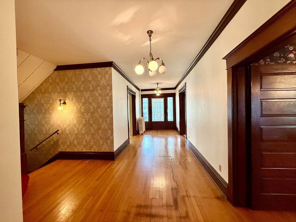 This 4 Square style home features 4 Bedroom 3 Baths, 4300 square feet, and is located on a corner lot. Some features include but not limited to: spacious room size, beautiful original wood trim, multiple pocket doors, multiple fireplaces, hardwood floors, 3rd floor open room with bedroom(5th), and hot water heat.
