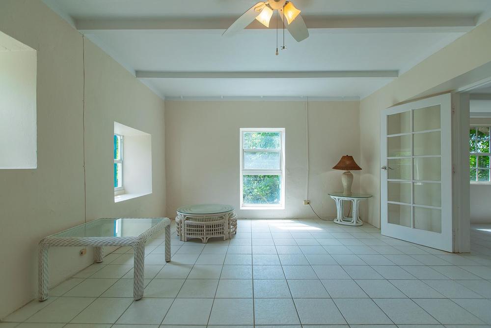 This sanctuary is gated for privacy, the first stop at the North Star Estate up the .2-mile driveway is a one-bedroom cottage with private patio and parking. The cottage is flanked by a large Flamboyant tree with stunning orange-red blooms, multiple Palm Trees and a Lime Tree at the doorway. Four large windows grace the western facade of the home.Built in the West Indian vernacular, two of the windows are over a foot deep and can be used as window seats for gazing at the lush flora and fauna. This spacious open floor plan cottage has new doors that allow lots of light in. The cottage has some small windows on the patio side that highlight traditional West Indian design.