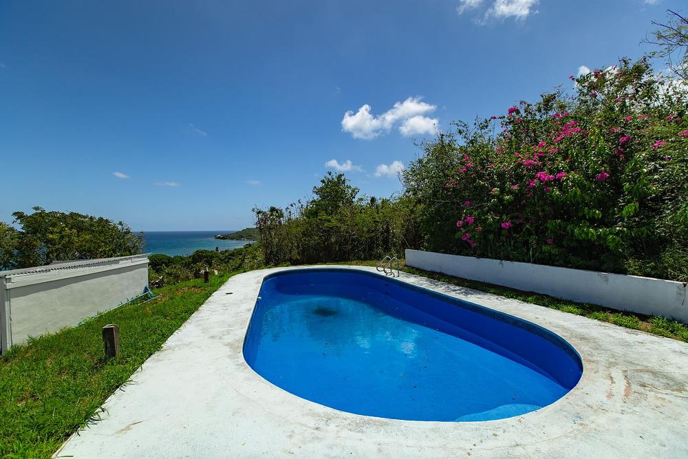 Turn towards Mount Eagle and you will find a staircase to the pool with a large concrete deck that overlooks the Sugar Mill, Hamm's Bluff and the ocean. You can put your toes in while watching the waves roll in to Davis Bay. Above the pool is a large grassy pad cut into hilltop which is perfect for parking cars whenever you are entertaining large groups.