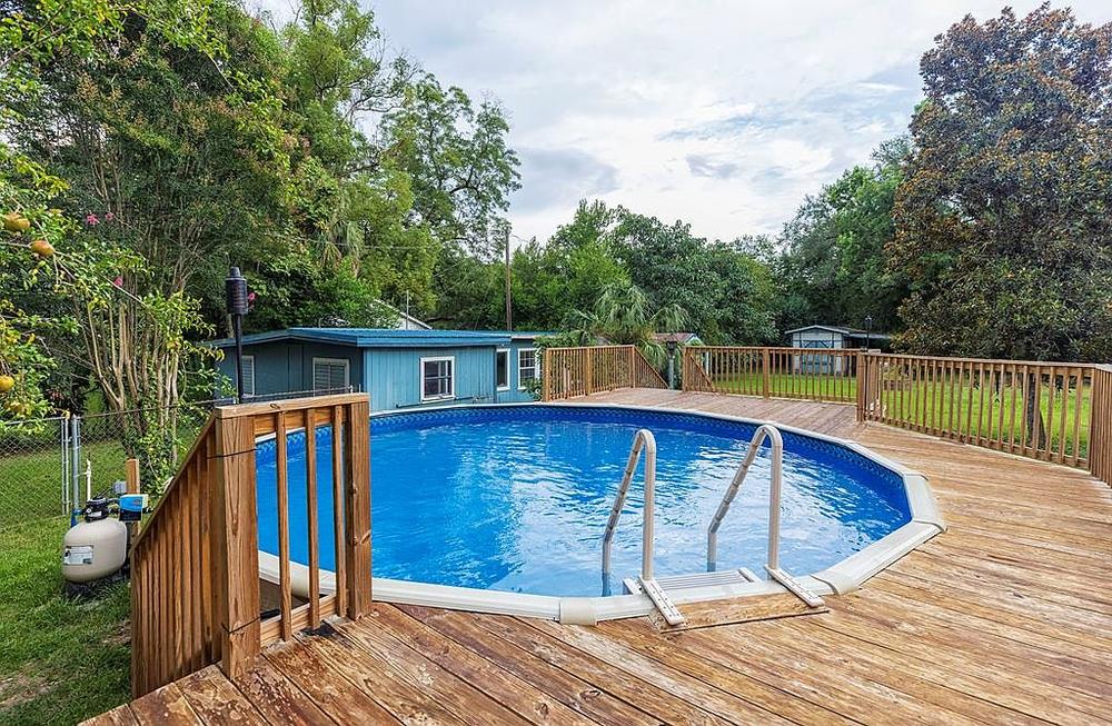 A newer back deck leads to an above-ground pool, and the home sits on a spacious lot with an irrigation well.