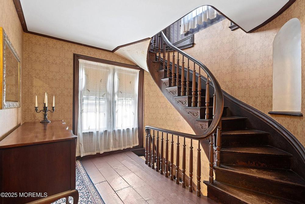 Inside the main home, an exquisite handcrafted staircase welcomes you and gracefully connects all three levels. The main floor showcases classic Victorian character with tall ceilings, rich woodwork, and a cozy gas fireplace that anchors the inviting living space.