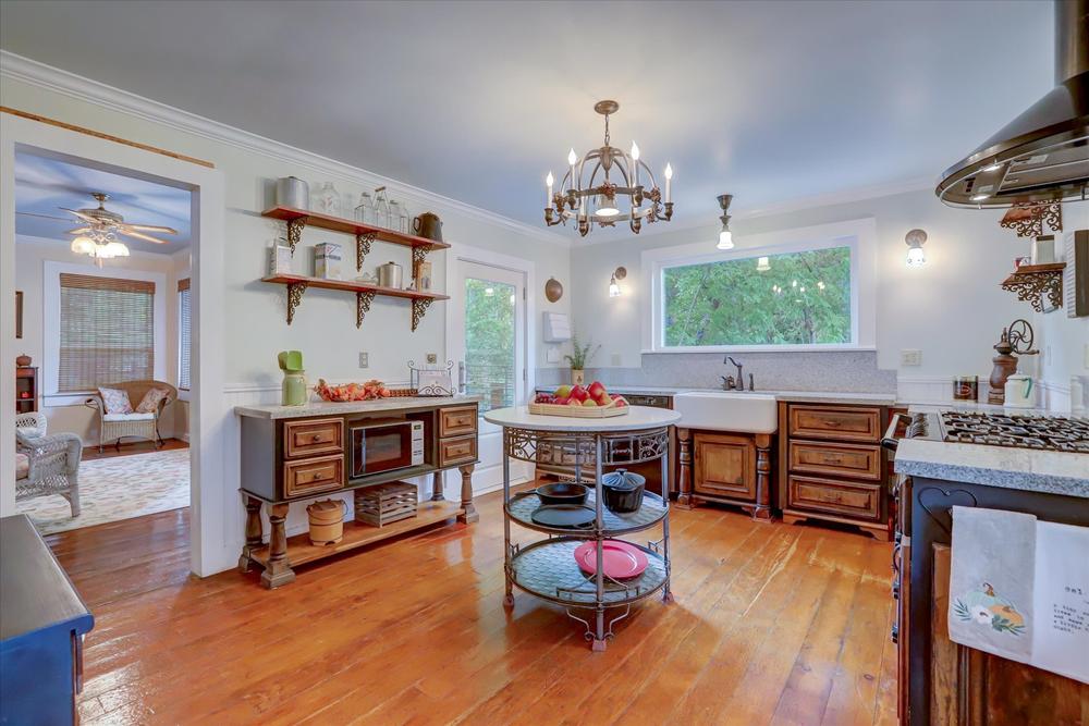 A wrap-around covered porch allows the natural light to dance throughout this delightful home with 9' ceilings, crown molding and hardwood floors. The open floor plan is unusual for the Victorian era with so much natural light! The formal living room and parlor offer big picture windows and room for lots of furnishings.