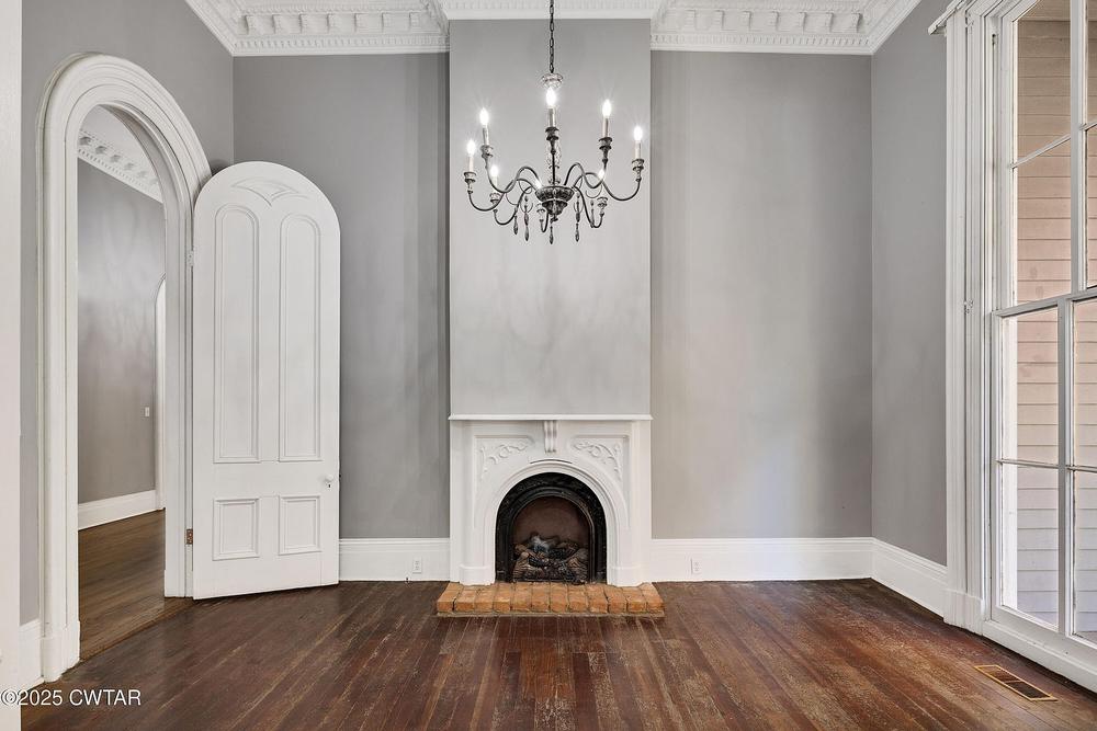 Graceful archways, including an exquisite pair of arched pocket doors, 5 fireplaces, and preserved original mouldings, and soaring 14 ft ceilings create an atmosphere that will captivate true historic-home enthusiasts.