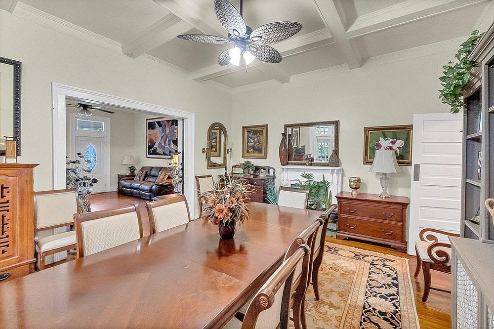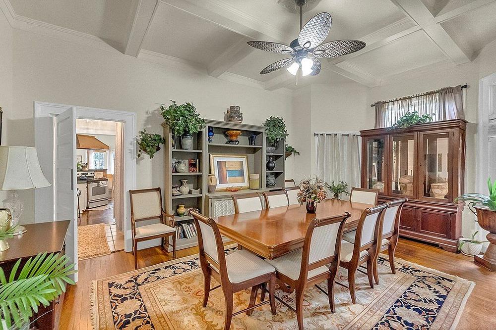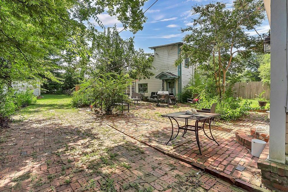 With 3,102 square feet across two stories, this 5-bedroom, 3-bathroom home features stunning architectural details including soaring ceilings, original hardwoods, ornate trim work, fireplaces, and a gracious wraparound porch—all framed by lush landscaping and a gated brick entrance.