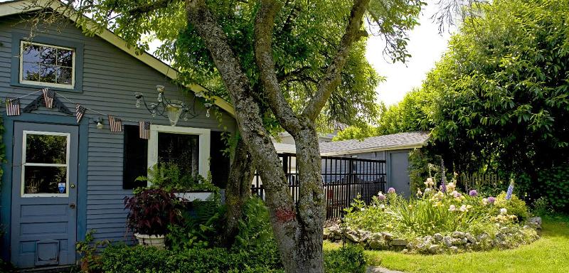 Lovely 1907 Victorian farmhouse boasts artistic custom kitchen, large lot with 2 garages and art studio.