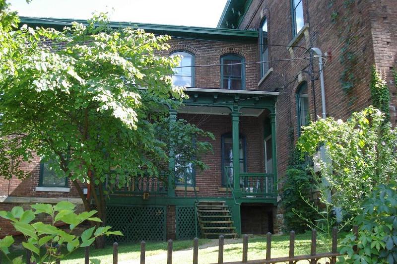 Built in 1867 this large Victorian Italianate was converted to apartment use in the 1950's. Three faux-marbled fireplaces remain as does much original millwork and faux-graining in the hallways.