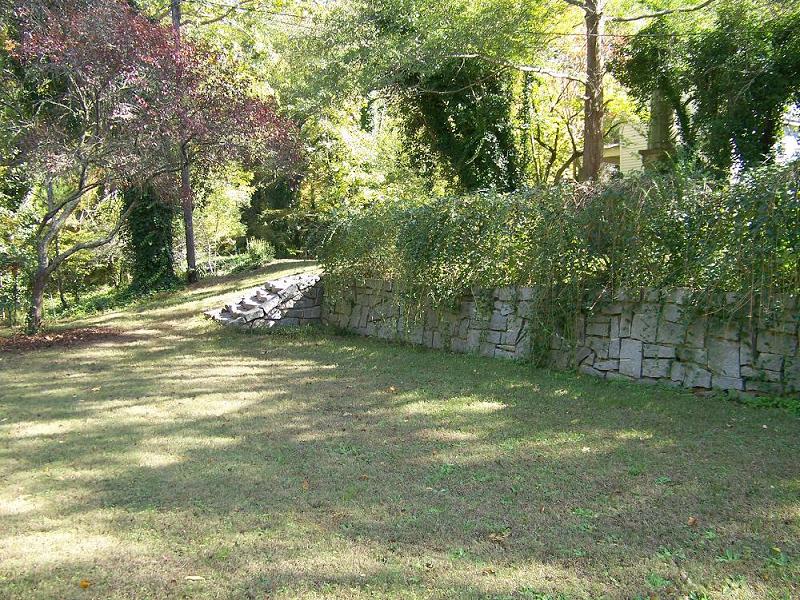 3 levels of Terraced Gardens with Rock Walls create dramatic landscape features between Farmhouse and Gristmill Home