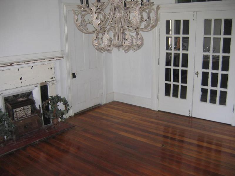 16x14 hardwood, center fireplace,french doors,2 closets. beadboard cealing.