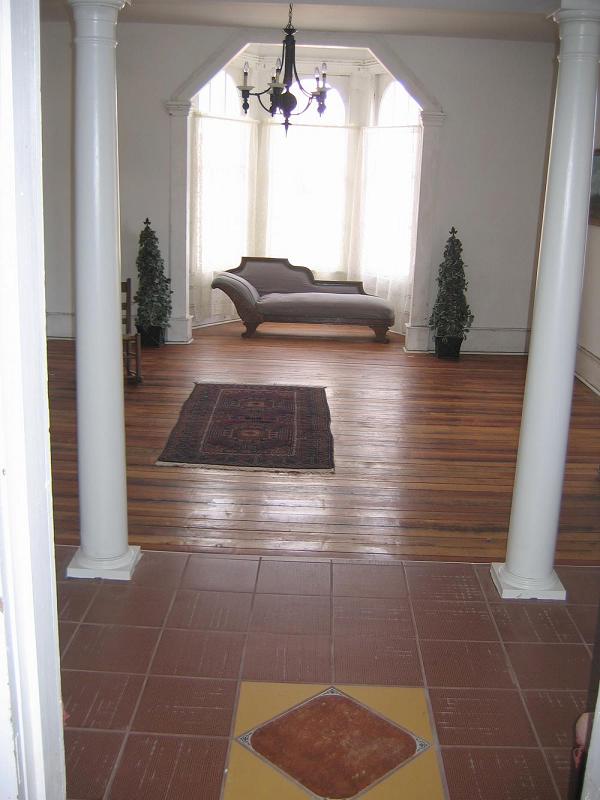 Using fine choice woods as walnut staircase to yellow poplar framing, beautiful heart pine floors hand cut nails and wooden peg interior doors with porcelain knobs, box key locks with transoms. Victorian boot scrapers on steps and original buggie stepping stone in the yard the lady of the house would have used.Gothic arched windows with closing shutters on the front porch. Hand-cut stone border that leads to a beautiful french drain.