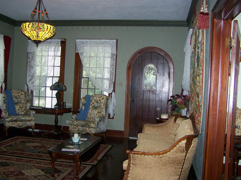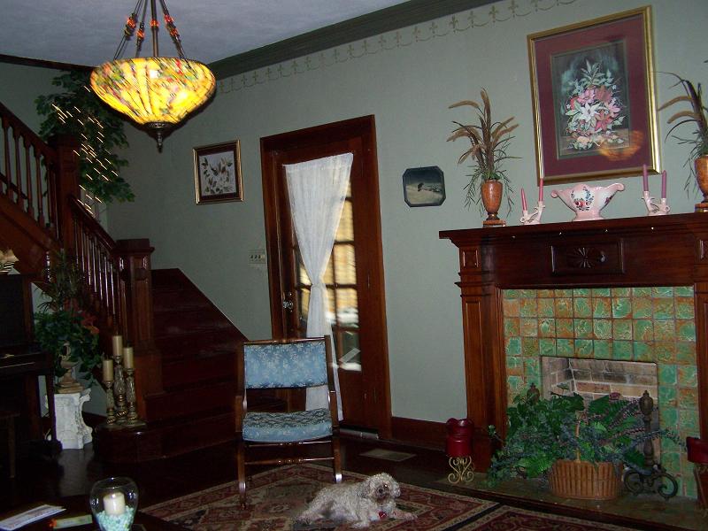There are many features to this one of a kind old southern mansion. Four columns grace the front porch extending above the balcony. The front door with a beveled glass, is rounded at the top to give the appearance of a castle. The porch and balcony wrap around one side of the house. The concrete driveway slopes upward and turns into a brick/concrete path drive that goes through the portico to a brick patio and makes a turn to return to the concrete drive. The double garage has a slate roof and was once a carriage house. Above the portico is a sun patio which overlooks the fish pond and grove of pecan trees. The lawn extends to a meadow and an acre of woods. Two large oak trees and two magnolia trees, as well as others sit on the lot. Beautiful Spanish tile tops the roof.Many unique features grace the inside, as well. Hardwood floors throughout, beautiful woodwork on molding, door frames, windows and a grand staircase. There are 2 sets of french doors and all door knobs are glass. Two gas log fireplaces, one with Italian marble tile. Handles on kitchen cabinets are copper. The counter tops and back splash have been updated with tan tile and new double stainless steel ovens & glass Jen Air cooktop