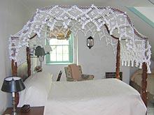 Charming room overlooking the garden. Four poster lace canopy double and one twin bed. <!--Rate per night: $150--> "Tucked under the sloping rear room of the old house, the small, snug Thomas Peacock Room, furnished with an antique canopy bed, promises pleasant dreams."